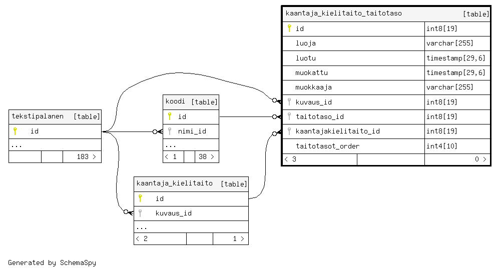 | kaantaja_kielitaito_taitotaso_pkey | Primary key | Asc | id |
