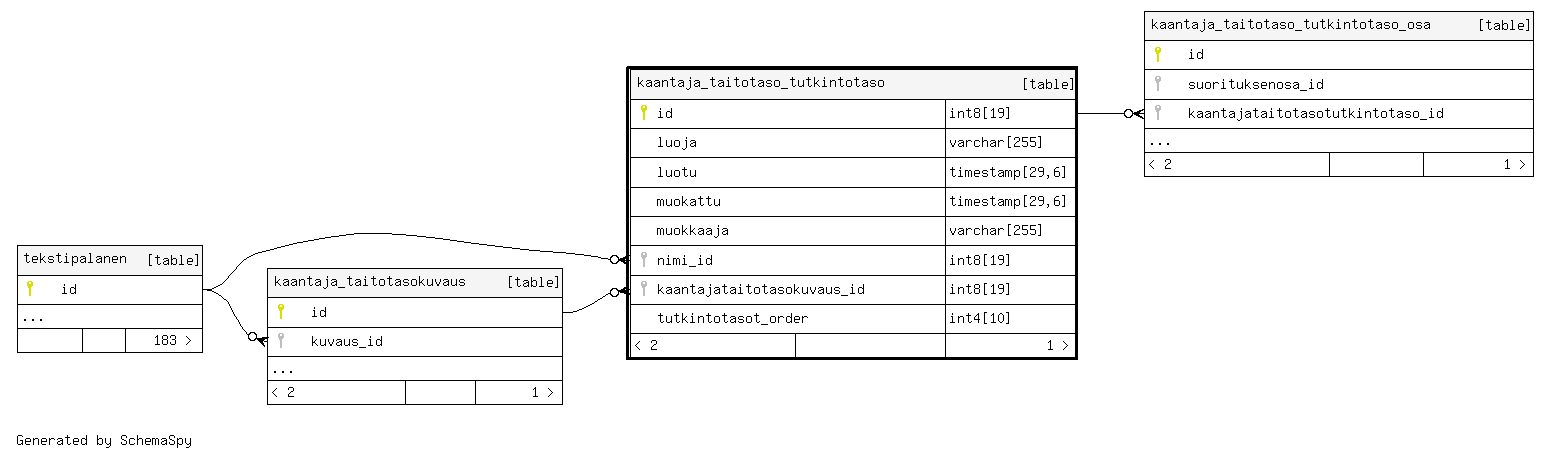 | kaantaja_taitotaso_tutkintotaso_pkey | Primary key | Asc | id |