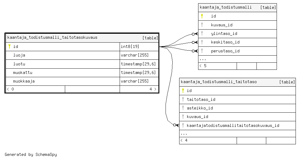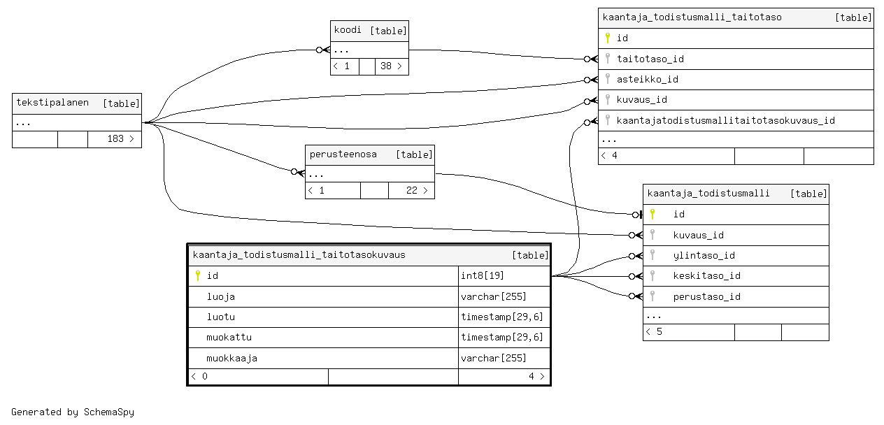 | kaantaja_todistusmalli_taitotasokuvaus_pkey | Primary key | Asc | id |
