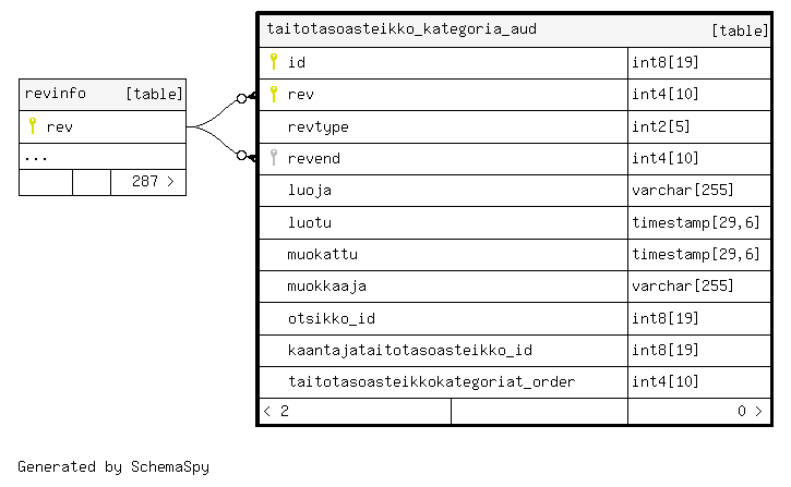 | taitotasoasteikko_kategoria_aud_pkey | Primary key | Asc/Asc | id + rev |
