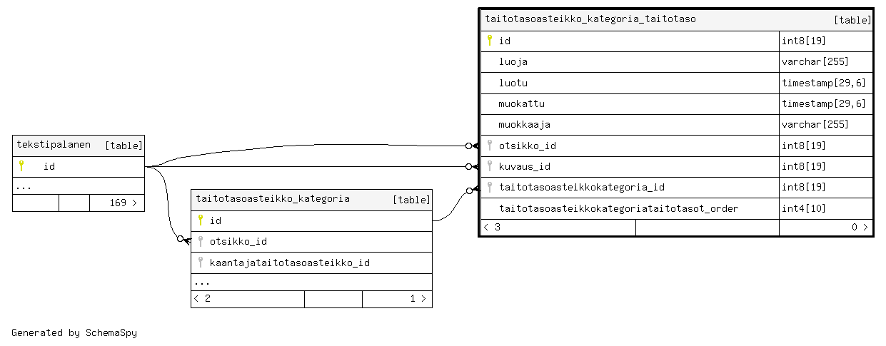 | taitotasoasteikko_kategoria_taitotaso_pkey | Primary key | Asc | id |