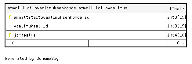 | ammattitaitovaatimuksenkohde_ammattitaitovaatimus_pkey | Primary key | Asc/Asc | ammattitaitovaatimuksenkohde_id + jarjestys |
