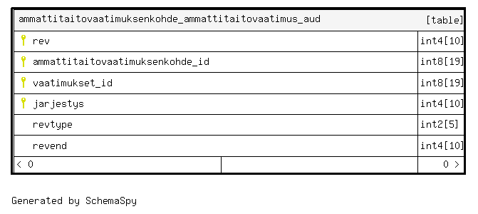 | ammattitaitovaatimuksenkohde_ammattitaitovaatimus_aud_pkey | Primary key | Asc/Asc/Asc/Asc | rev + ammattitaitovaatimuksenkohde_id + vaatimukset_id + jarjestys |