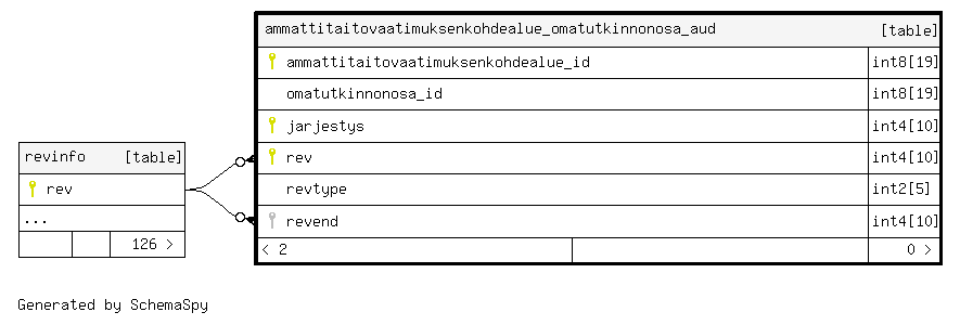 | ammattitaitovaatimuksenkohdealue_omatutkinnonosa_aud_pkey | Primary key | Asc/Asc/Asc | ammattitaitovaatimuksenkohdealue_id + jarjestys + rev |