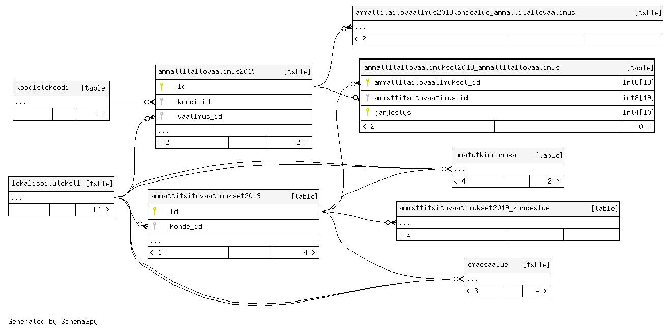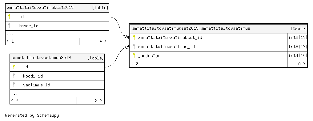 | ammattitaitovaatimukset2019_ammattitaitovaatimus_pkey | Primary key | Asc/Asc | ammattitaitovaatimukset_id + jarjestys |