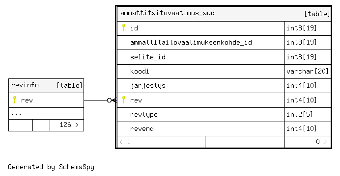 | ammattitaitovaatimus_aud_pkey | Primary key | Asc/Asc | id + rev |