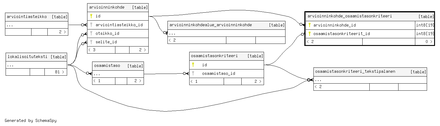 | arvioinninkohde_osaamistasonkriteeri_pkey | Primary key | Asc/Asc | arvioinninkohde_id + osaamistasonkriteerit_id |