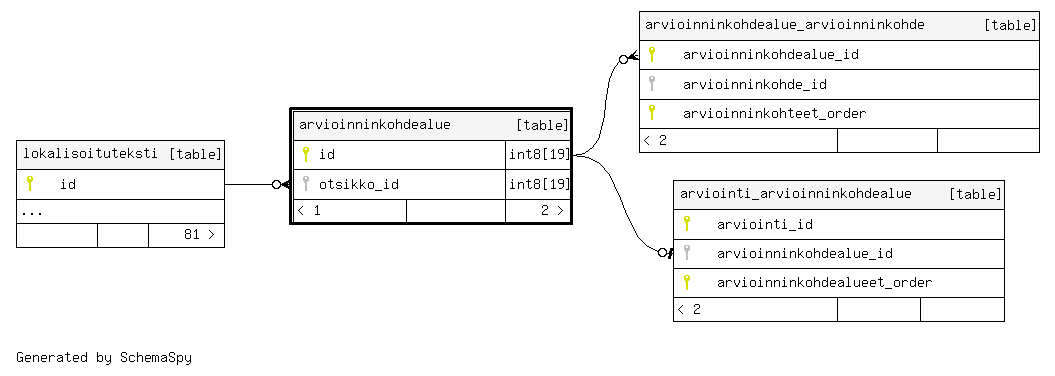 | arvioinninkohdealue_pkey | Primary key | Asc | id |