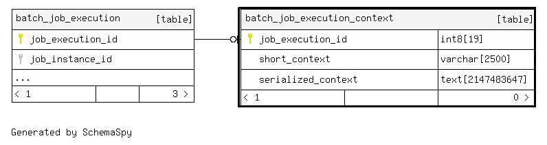 | batch_job_execution_context_pkey | Primary key | Asc | job_execution_id |
