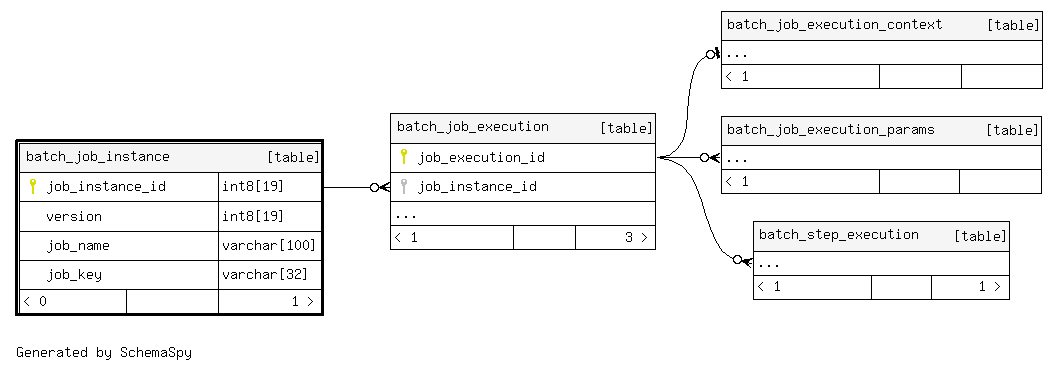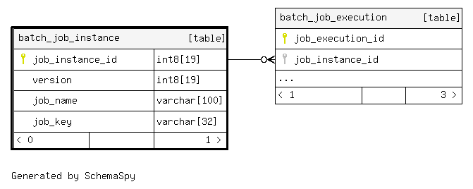 | batch_job_instance_pkey | Primary key | Asc | job_instance_id |