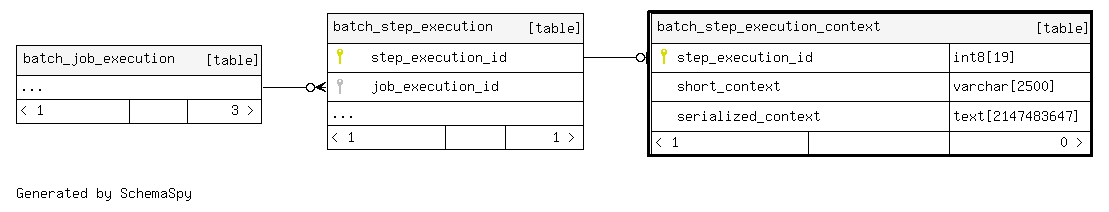 | batch_step_execution_context_pkey | Primary key | Asc | step_execution_id |
