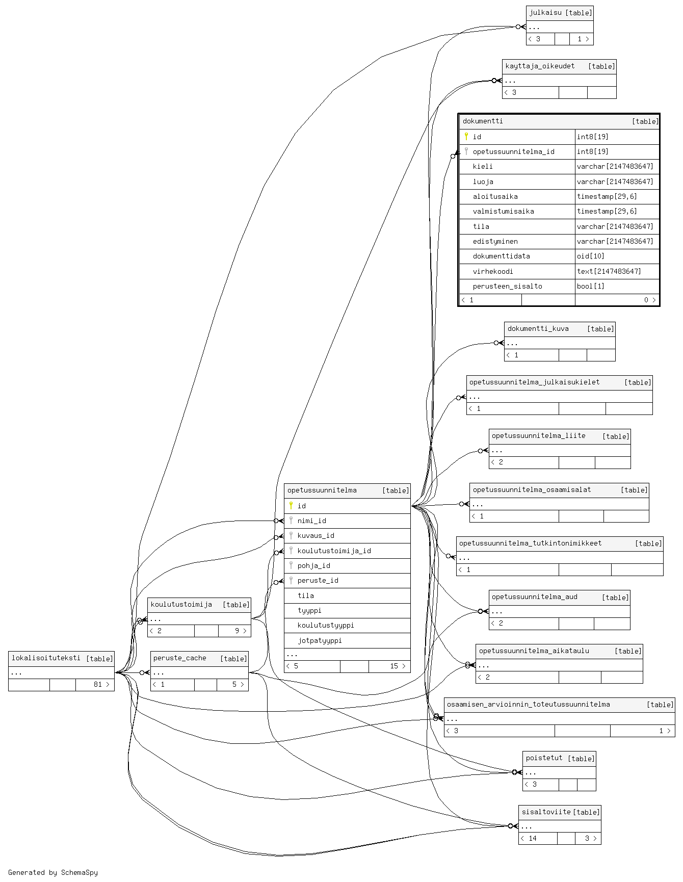 | dokumentti_pkey | Primary key | Asc | id |