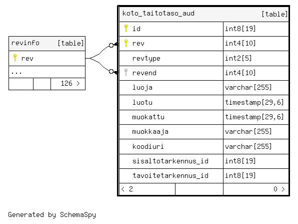 | koto_taitotaso_aud_pkey | Primary key | Asc/Asc | id + rev |