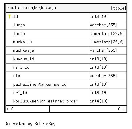 | koulutuksenjarjestaja_pkey | Primary key | Asc | id |