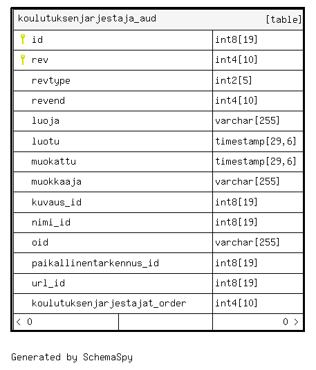 | koulutuksenjarjestaja_aud_pkey | Primary key | Asc/Asc | id + rev |