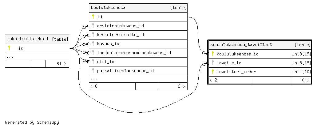 koulutuksenosa_tavoitteet_pkey Primary key Asc/Asc koulutuksenosa_id + tavoitteet_order