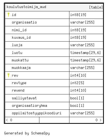| koulutustoimija_aud_pkey | Primary key | Asc/Asc | id + rev |