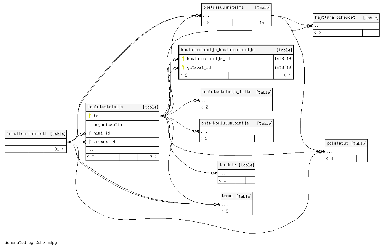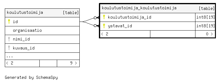 | koulutustoimija_koulutustoimija_pkey | Primary key | Asc/Asc | koulutustoimija_id + ystavat_id |