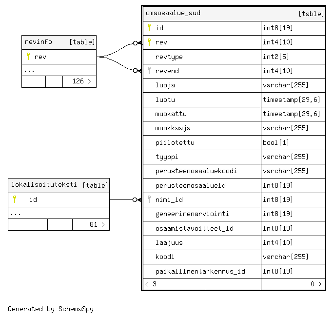 | omaosaalue_aud_pkey | Primary key | Asc/Asc | id + rev |