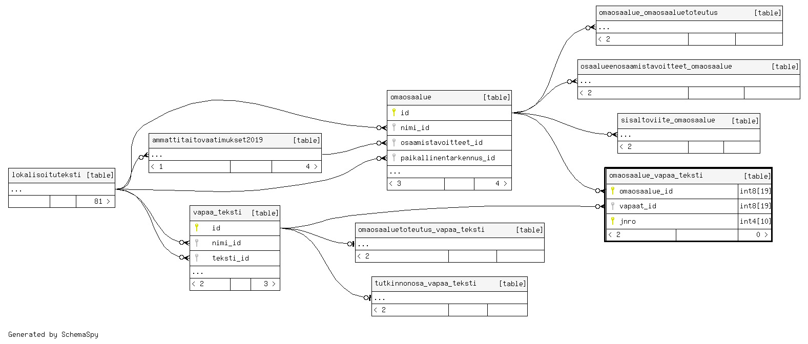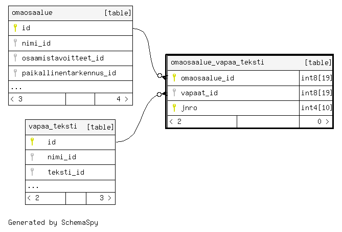 | omaosaalue_vapaa_teksti_pkey | Primary key | Asc/Asc | omaosaalue_id + jnro |