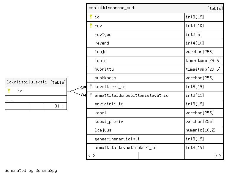 | omatutkinnonosa_aud_pkey | Primary key | Asc/Asc | id + rev |