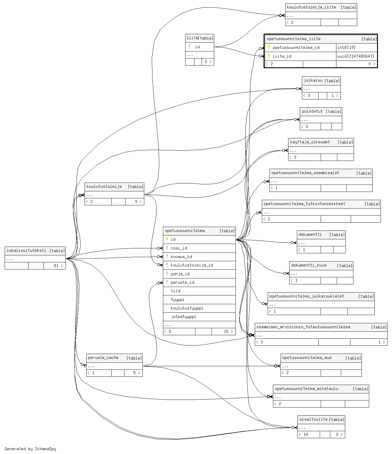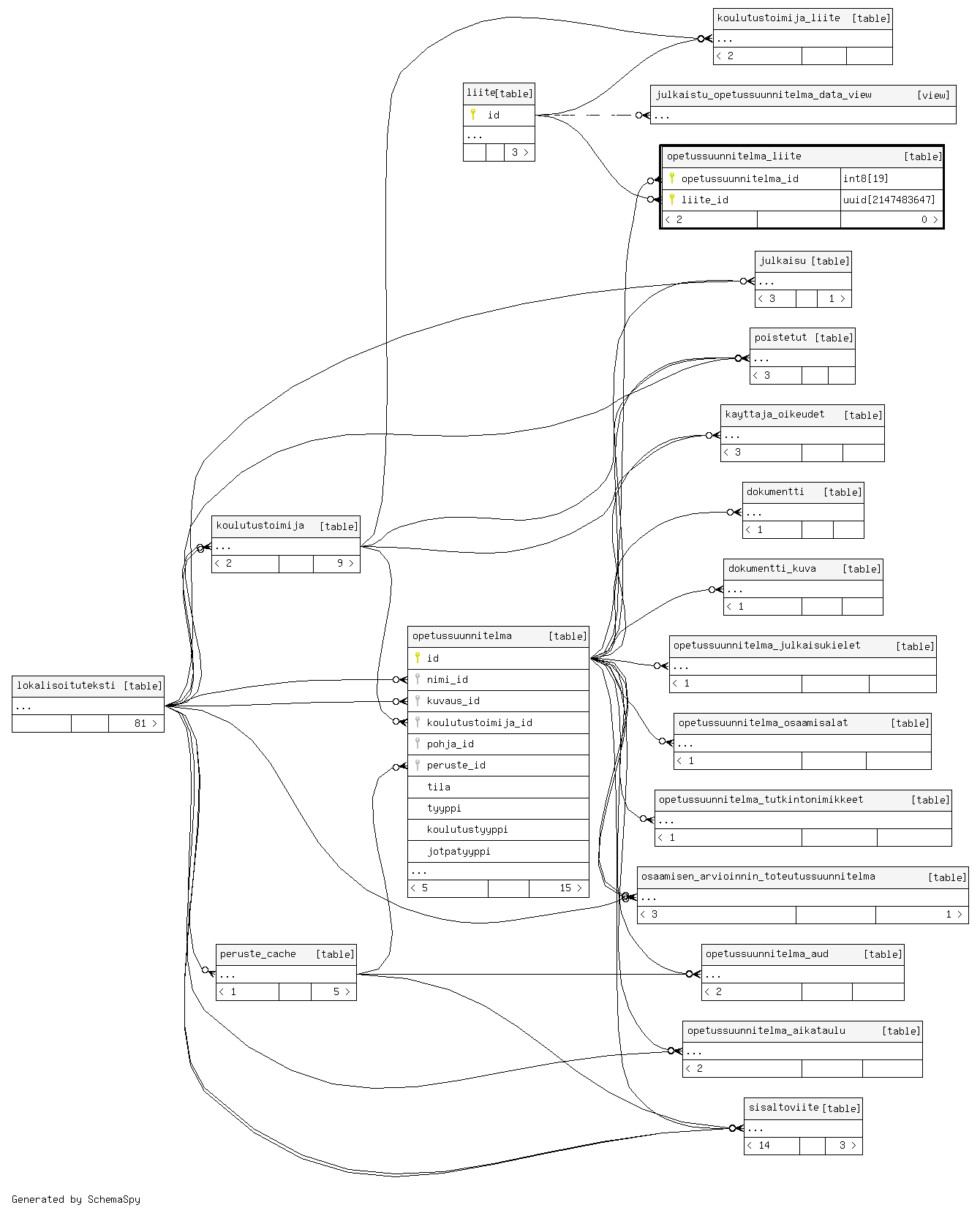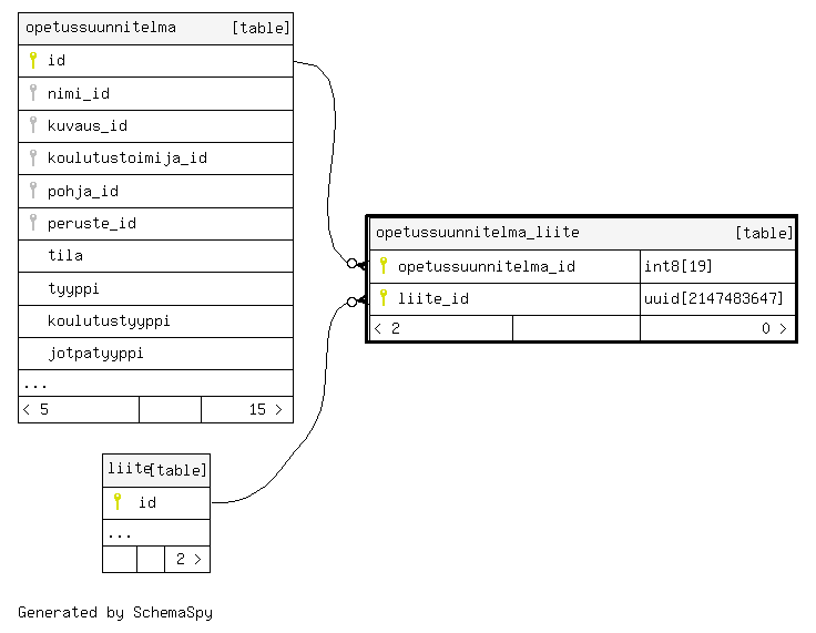 opetussuunnitelma_liite_pkey Primary key Asc/Asc opetussuunnitelma_id + liite_id