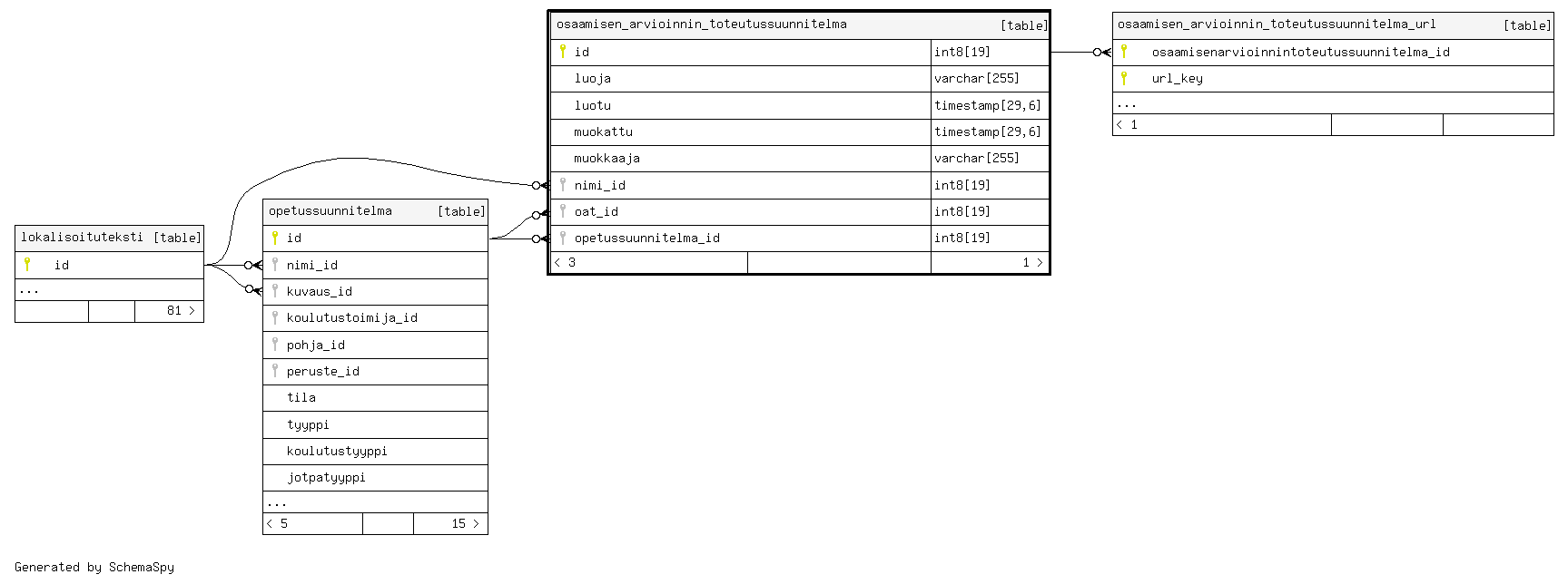 | osaamisen_arvioinnin_toteutussuunnitelma_pkey | Primary key | Asc | id |