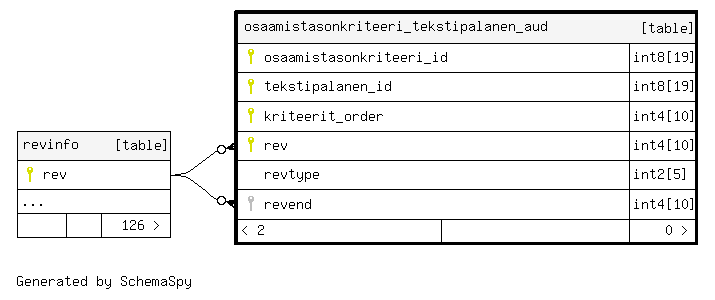 | osaamistasonkriteeri_tekstipalanen_aud_pkey | Primary key | Asc/Asc/Asc/Asc | rev + osaamistasonkriteeri_id + tekstipalanen_id + kriteerit_order |