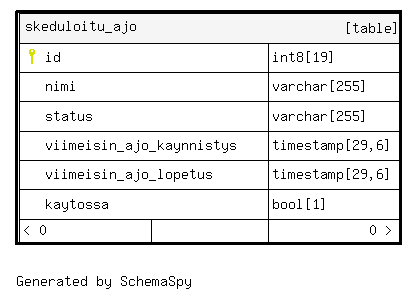| skeduloitu_ajo_pkey | Primary key | Asc | id |