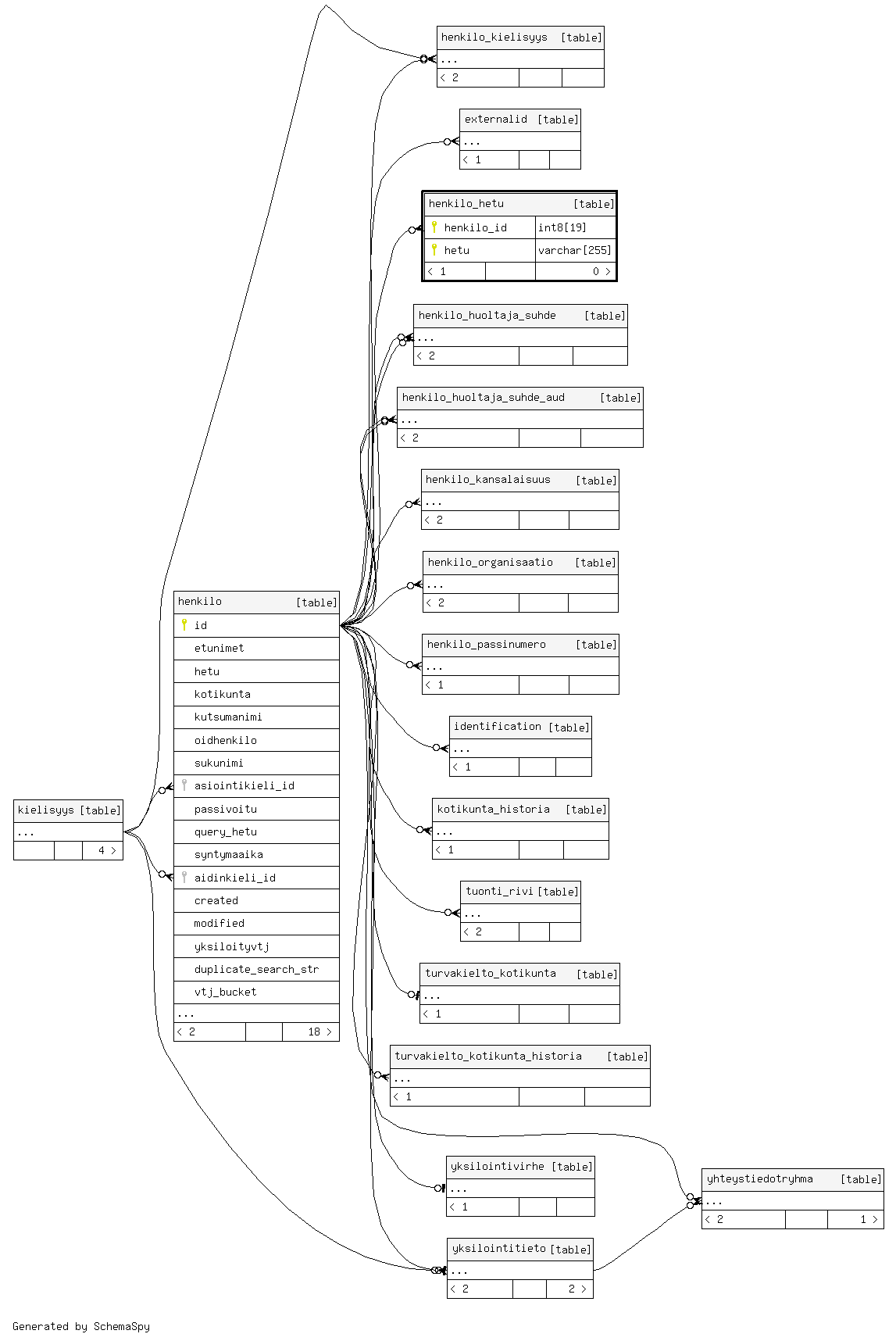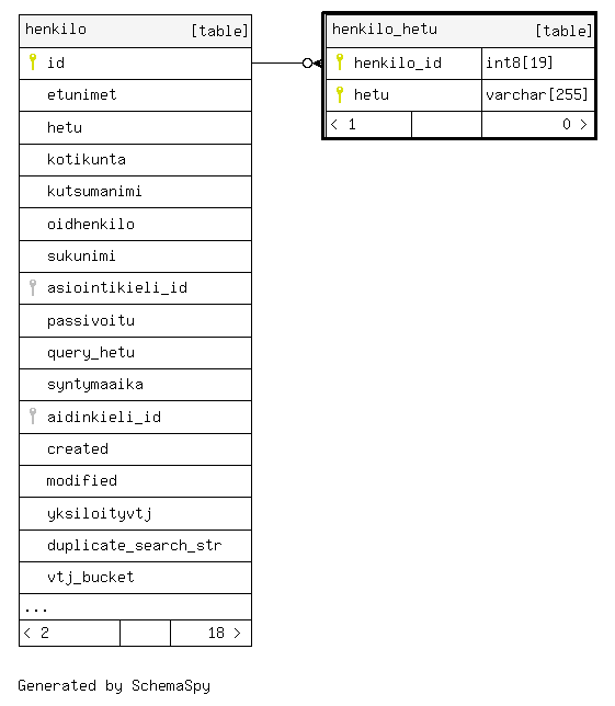| henkilo_hetu_pkey | Primary key | Asc/Asc | henkilo_id + hetu |