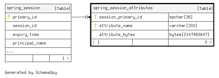 | spring_session_attributes_pk | Primary key | Asc/Asc | session_primary_id + attribute_name |