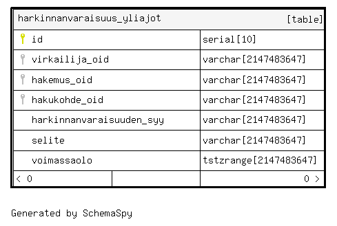 | id | serial | 10 | √ | nextval('harkinnanvaraisuus_yliajot_id_seq'::regclass) |