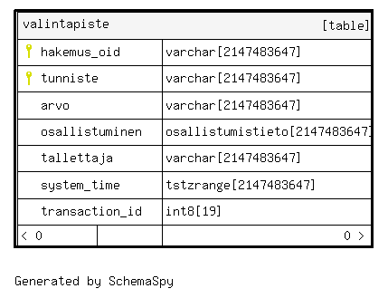 | valintapiste_pkey | Primary key | Asc/Asc | hakemus_oid + tunniste |