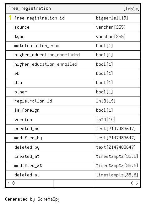 | free_registration_pkey | Primary key | Asc | free_registration_id |